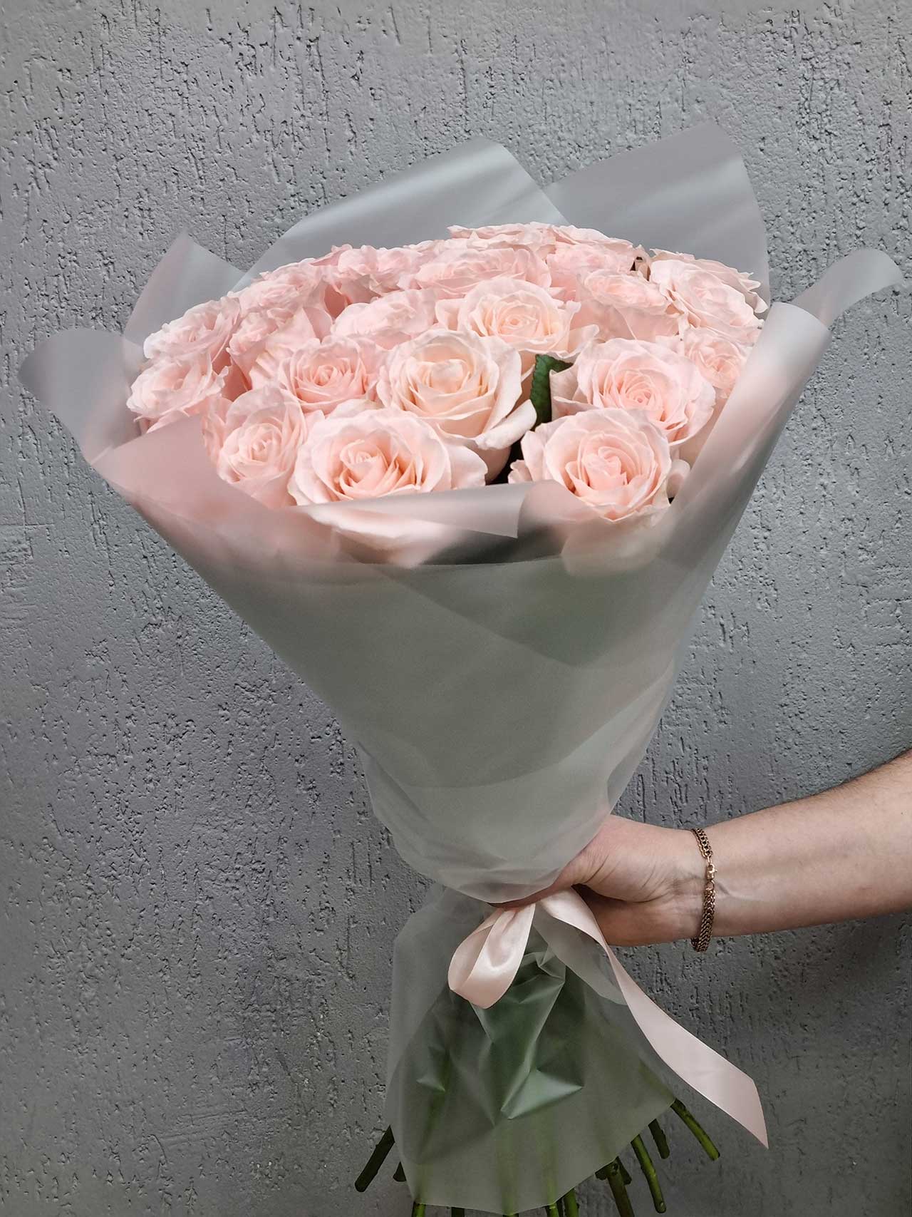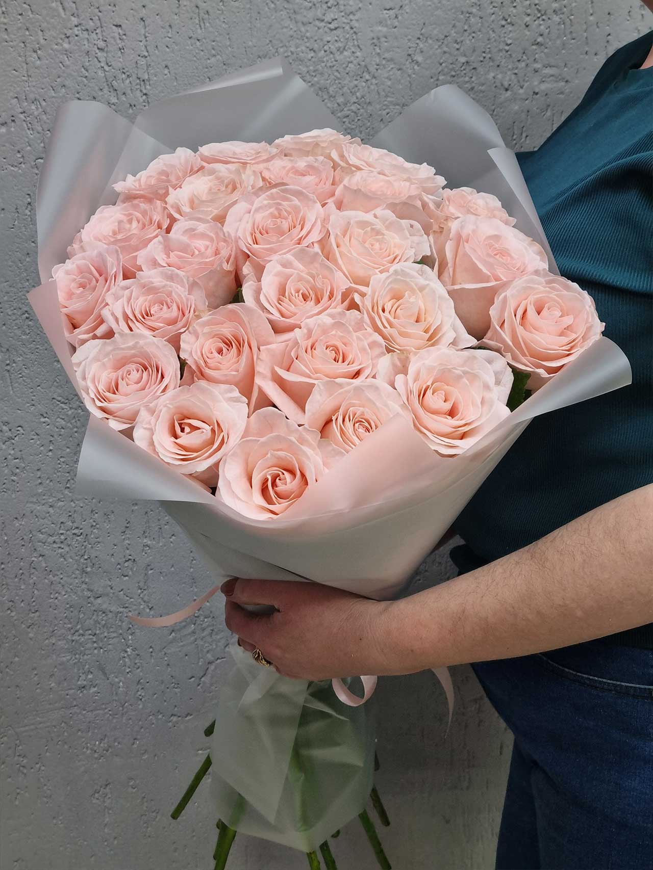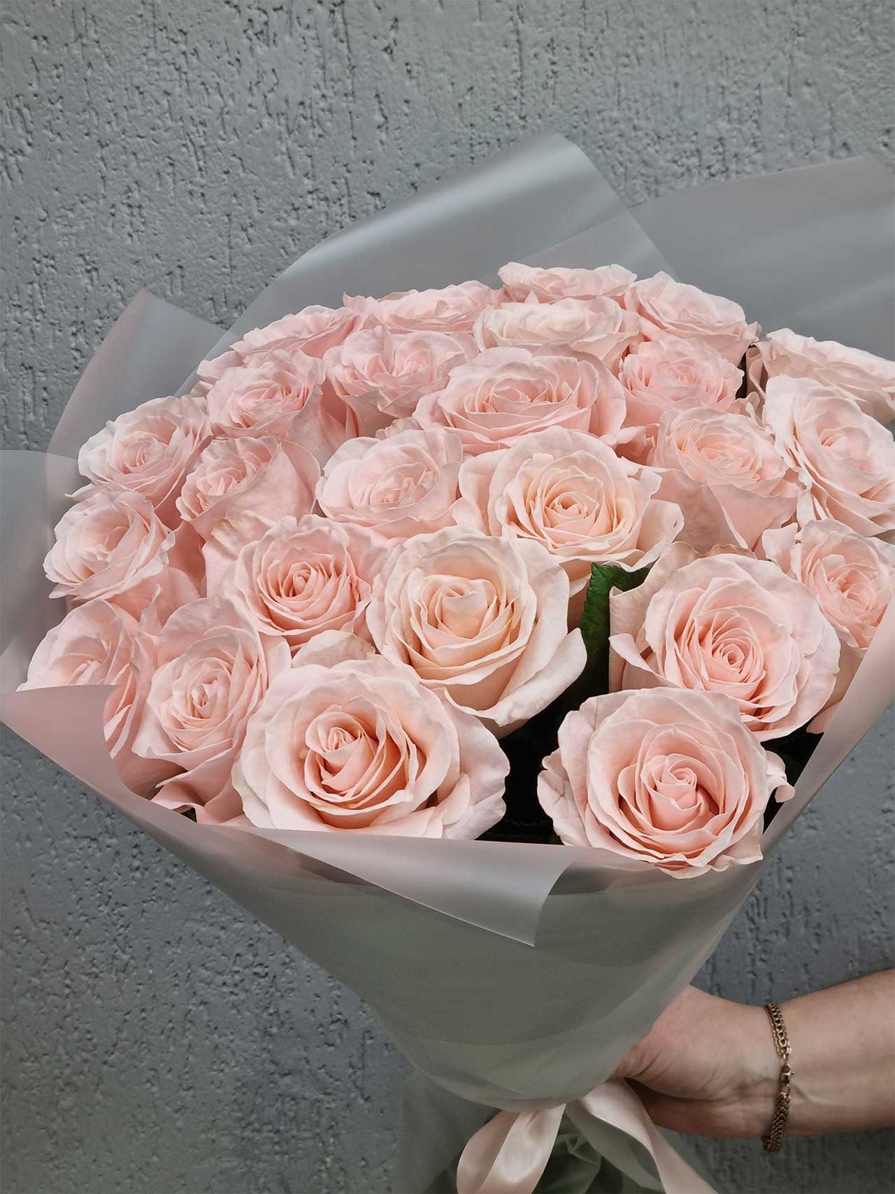 Когда слова не могут выразить ваших чувств, на помощь приходит «Робкий поцелуй». Этот изысканный букет из 25 одноголовых роз сорта "Saida" — воплощение утончённой красоты и романтики. Название говорит само за себя: каждое прикосновение этих нежных цветов словно шёпот любви, который трепетно касается сердца.