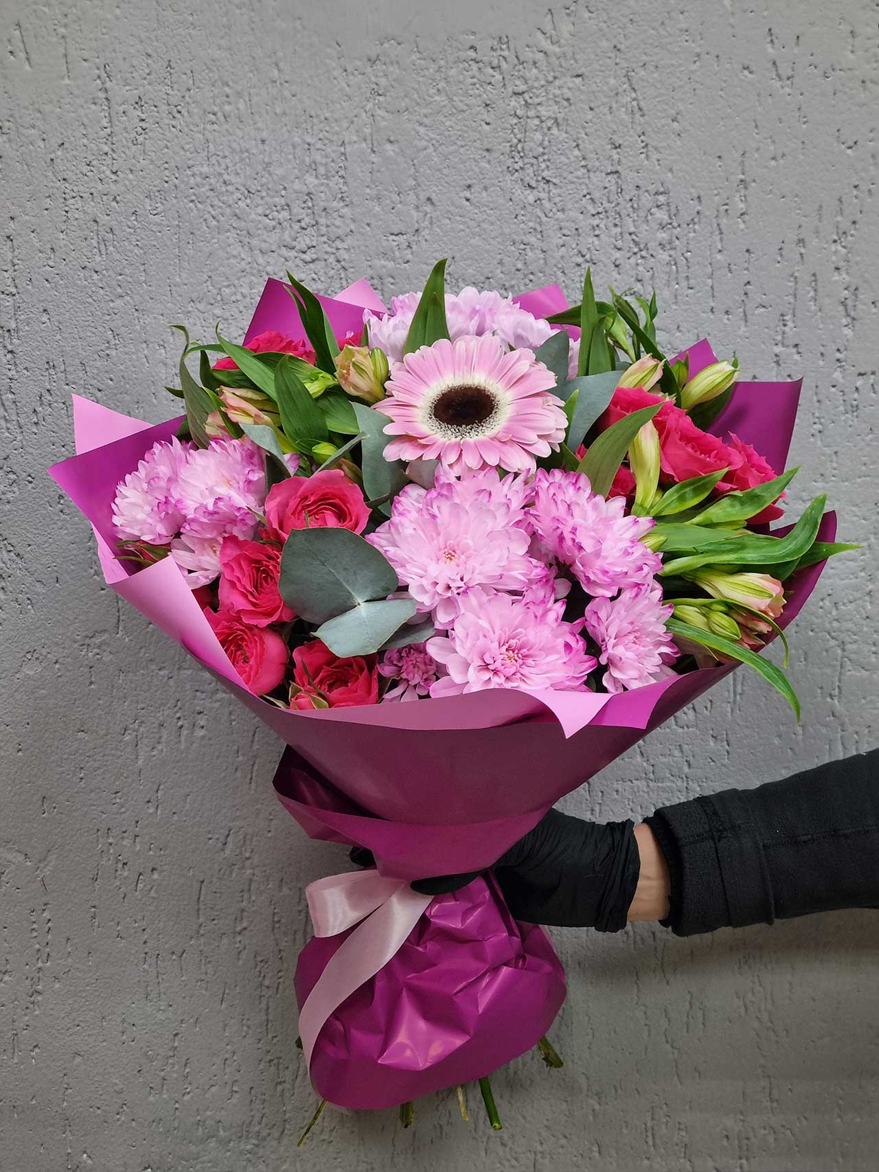 Погрузитесь в атмосферу нежности с букетом "Дар Природы". Это волшебное сочетание гербер, кустовых роз, альстромерии, эвкалипта и кустовых хризантем символизирует красоту и гармонию природы. Название отражает истинную суть букета — он словно создан самой природой, чтобы дарить радость и вдохновение.